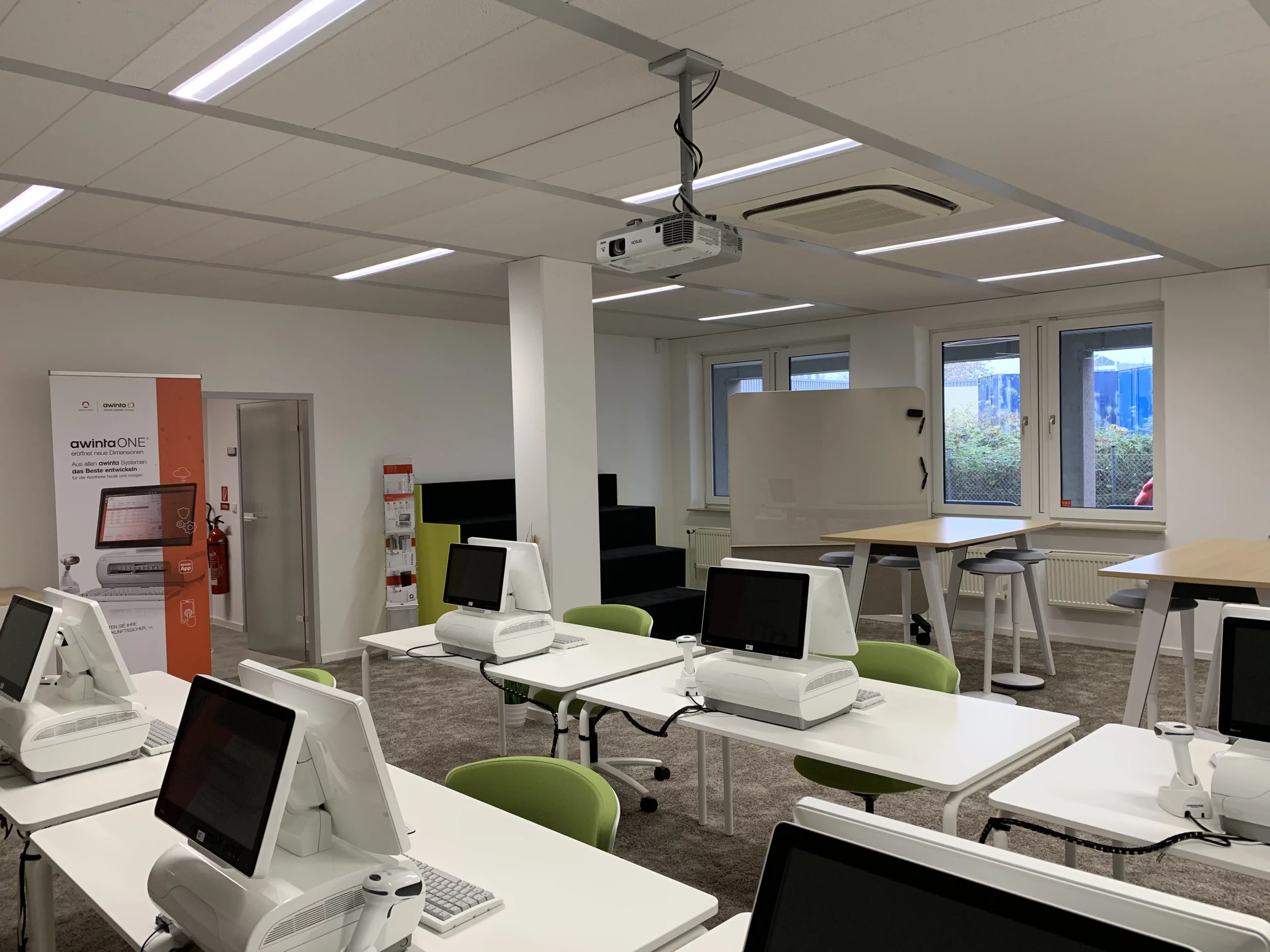 Beide Flächen wurden im Bestand grundlegend modernisiert. Die Flächen unterstützen im neuen Zustand deutlich die Werte und Ziele der awinta GmbH. Besonders der Schulungsbereich am Standort Mannheim stärkt durch das neue und frische Design den Kundenauftritt.